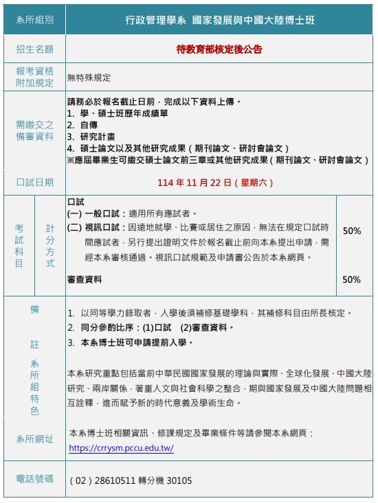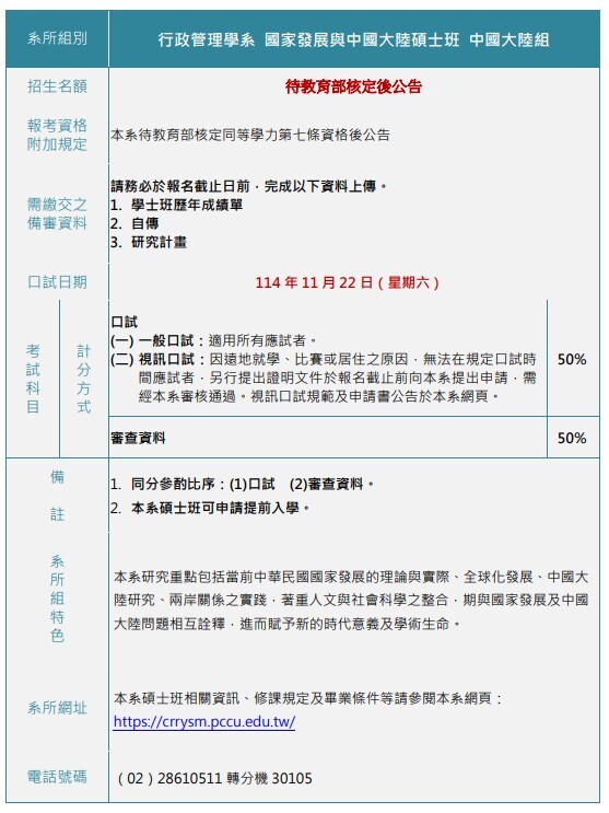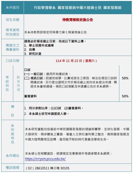 (以同等學力報考,審查資料須於114年11月03日前寄達)