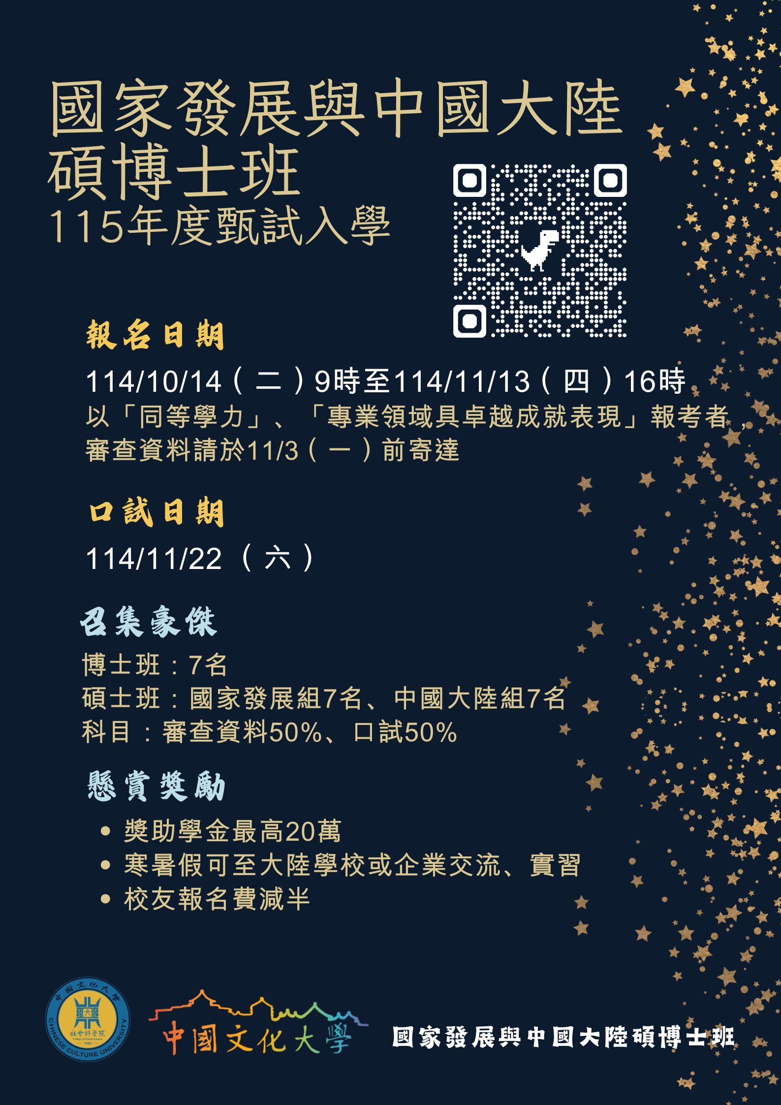 【招生公告】115學年度碩博士班甄試入學招生~歡迎加入我們~